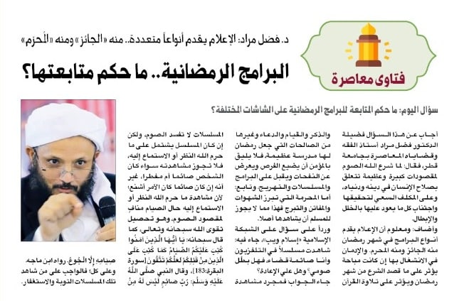 سؤال اليوم: ما حكم المتابعة للبرامج الرمضانية على الشاشات المختلفة ؟