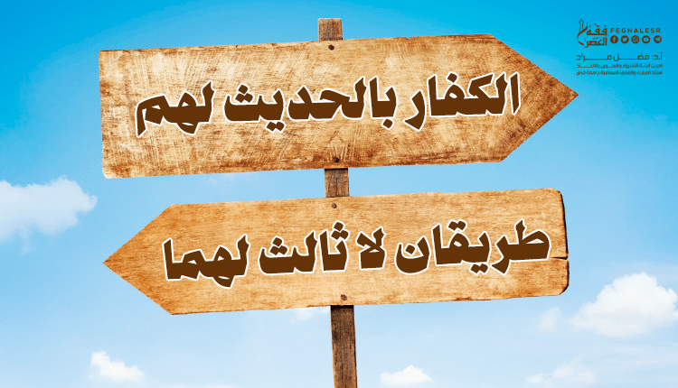احتمالان لا ثالث لهما: فإن قال: هو بإذن الله فقد نسف كل زندقته، وإن قال القول الآخر وهو: “أن حديث الرسول ولو سمعته منه مباشرة لا أؤمن به؛ لأنه ليس بدين من عند الله، ولم يأذن به الله، وعليه: فهو افتراء على الله في التحليل والتحريم والتشريع .. فقد أظهر كفره، وجعل رسول الله -والعياذ بالله- مفتريًا على الله الكذب، ومعلوم أن هذا من أكبر الجرائم وكفر بالله لقوله تعالى: (إِنَّمَا يَفْتَرِي الْكَذِبَ الَّذِينَ لاَ يُؤْمِنُونَ) وقال: (وَمَنْ أَظْلَمُ مِمَّنِ افْتَرَىٰ عَلَى اللَّهِ الْكَذِبَ)