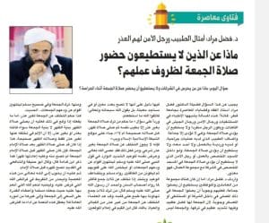 وأردف د. فضل مراد : أما إن كان هناك مجموعة من العاملين والموظفين يستطيع أن يصلوا جماعة فعليهم وجوباً أن يصلوا الجمعة في ذلك المصلى في داخل الشركة أو المستشفى أو المعسكر وجوباً، لأن الجمعة لها فضل عظيم وفيها تشديد عظيم في تركها، والجمعة ليس فيها دليل على أنها لا تصح بعدد معين أو في مساجد معينة بل يقول الله سبحانه وتعالى فاتقوا الله ما استطعتم.