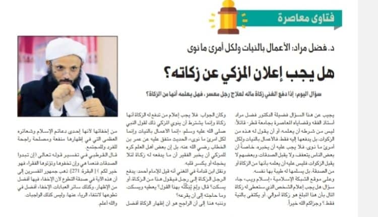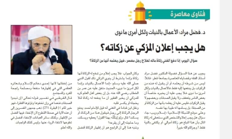 هل يجب إعلان المزكي عن زكاته ؟